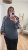 Ribbed fabric in a beautiful indigo with coordinating plaid sleeves will make this your fall go-to top! It has tons of stretchy and is so comfortable while also being stylish.